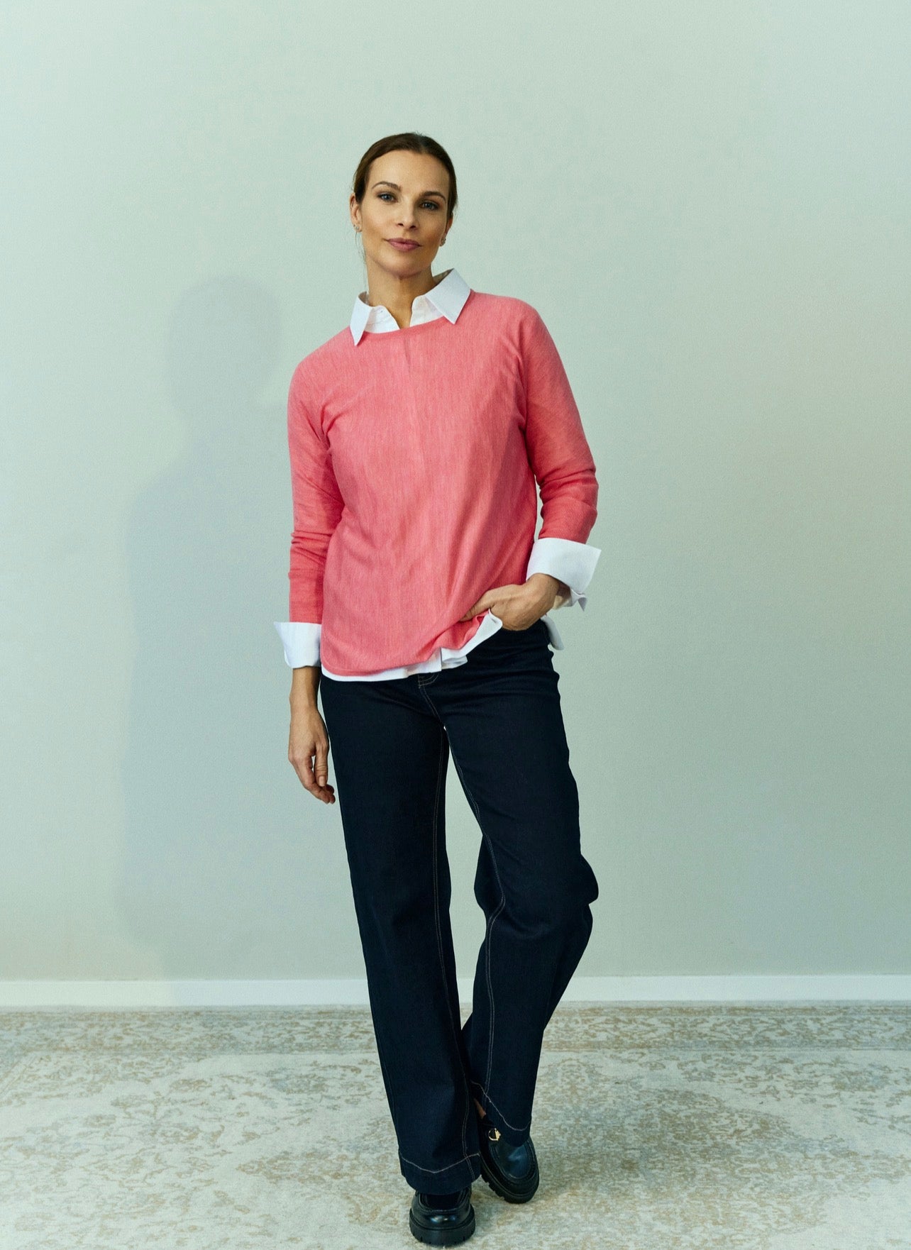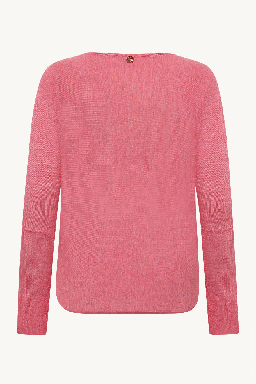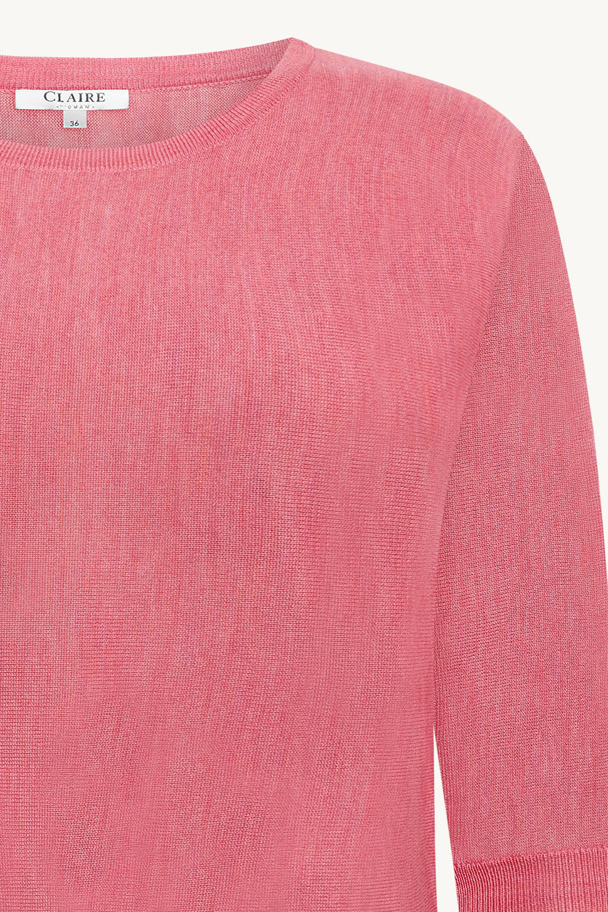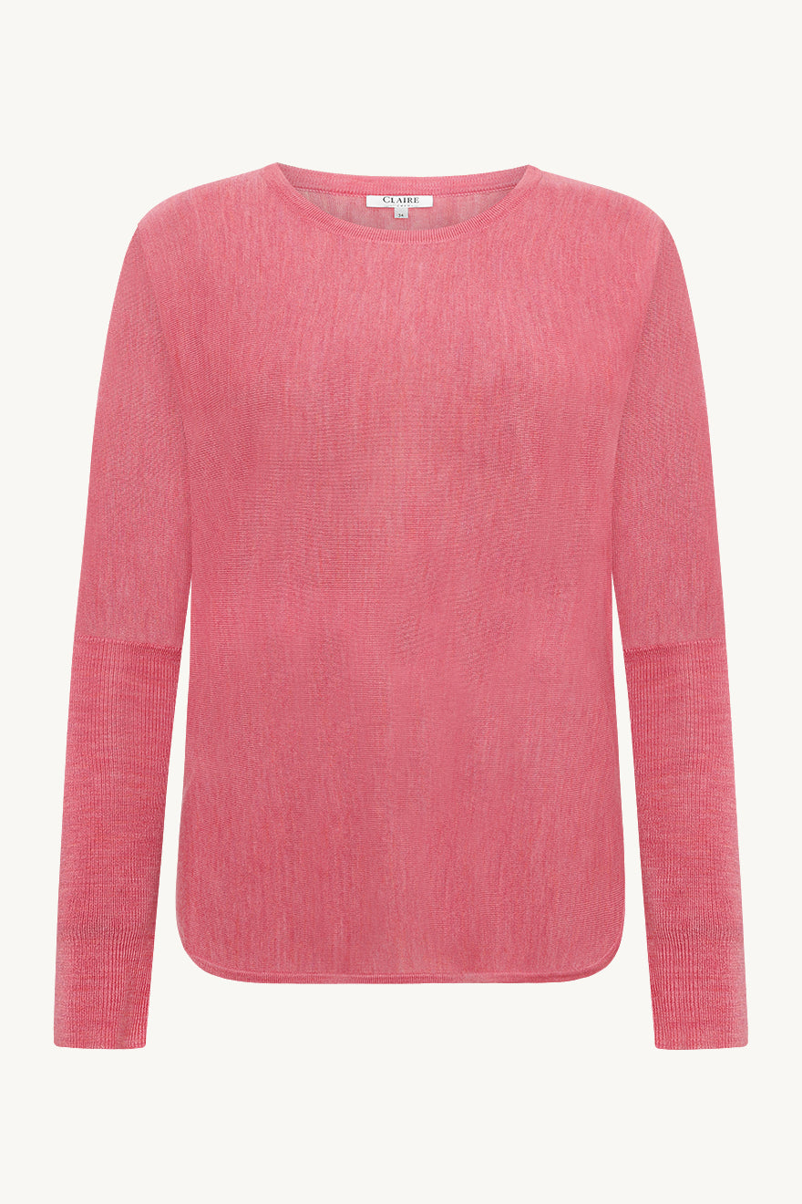 Deilig tynn merino genser fra Claire. Genseren har rund hals og har buet kant på sidene.