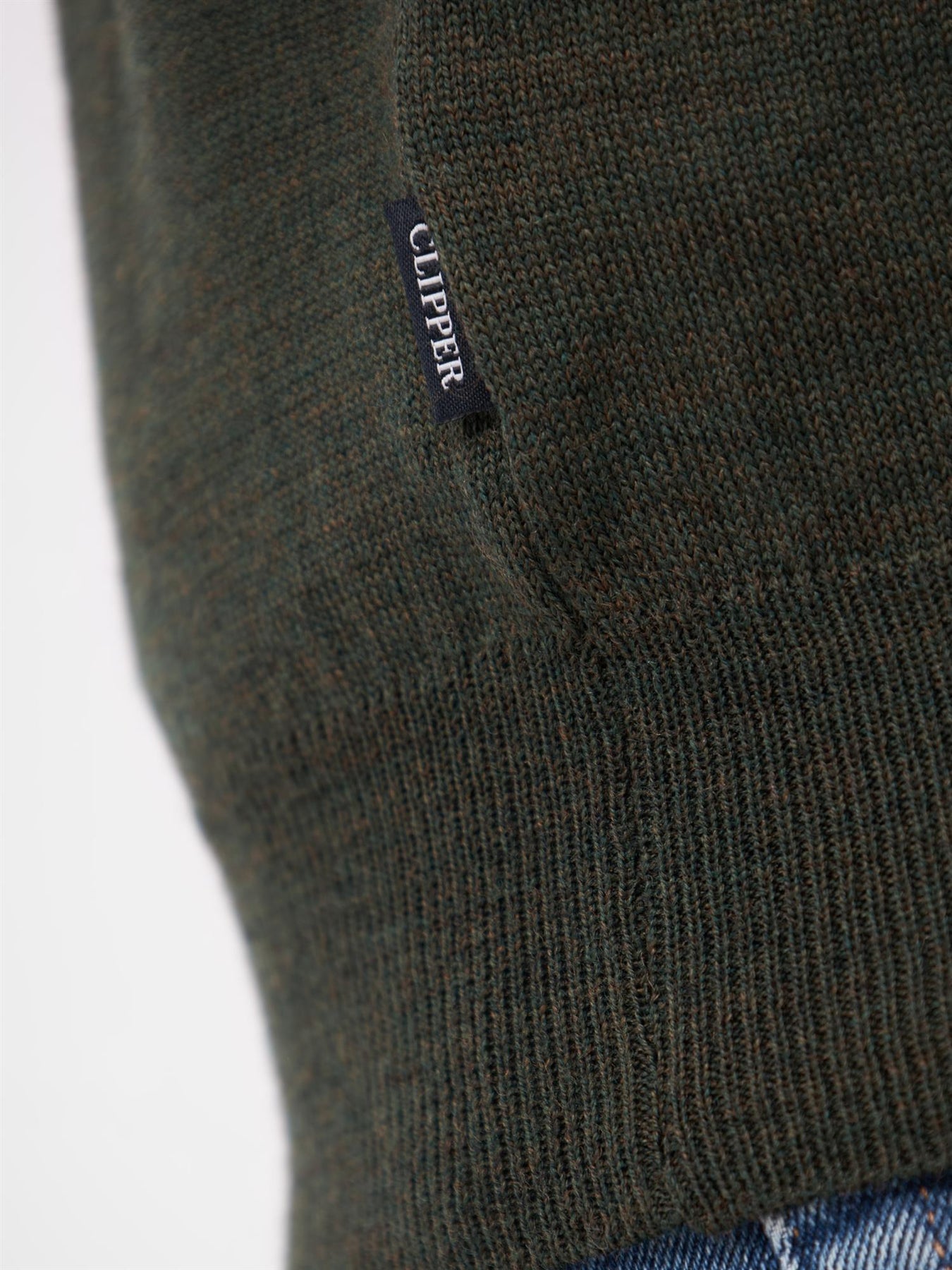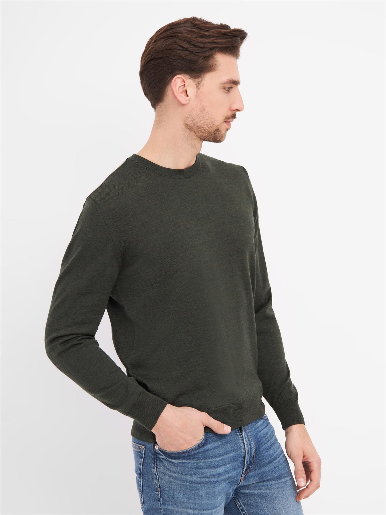 Genser med rund hals fra Clipper i 100% merinoull. Utrolig lekker olivenfarge som er litt melert. God kvalitet som tåler å brukes.