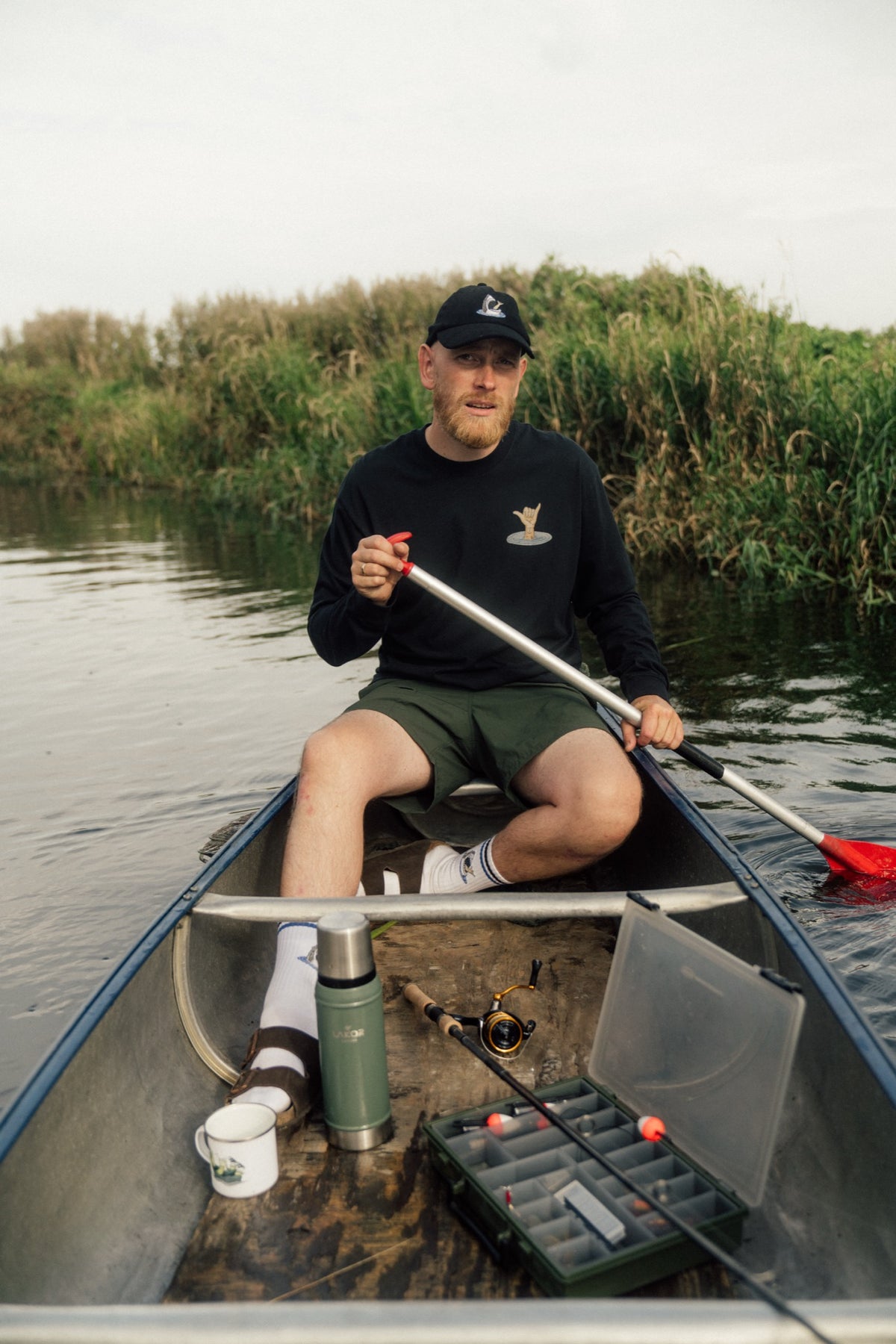T-skjorte med lang arm fra Lakor med motiv på vestre bryst og på ryggen.