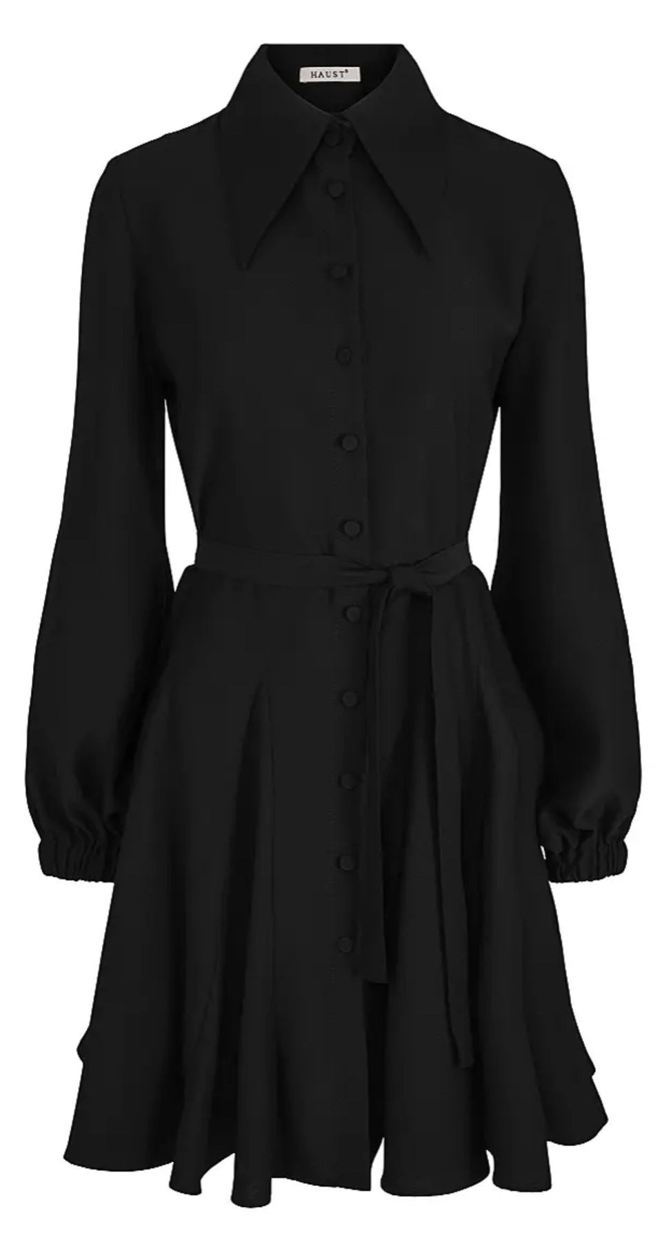 Elegant skjortekjole som er designet med en spiss krage, elastiske mansjetter, knappelukking foran.