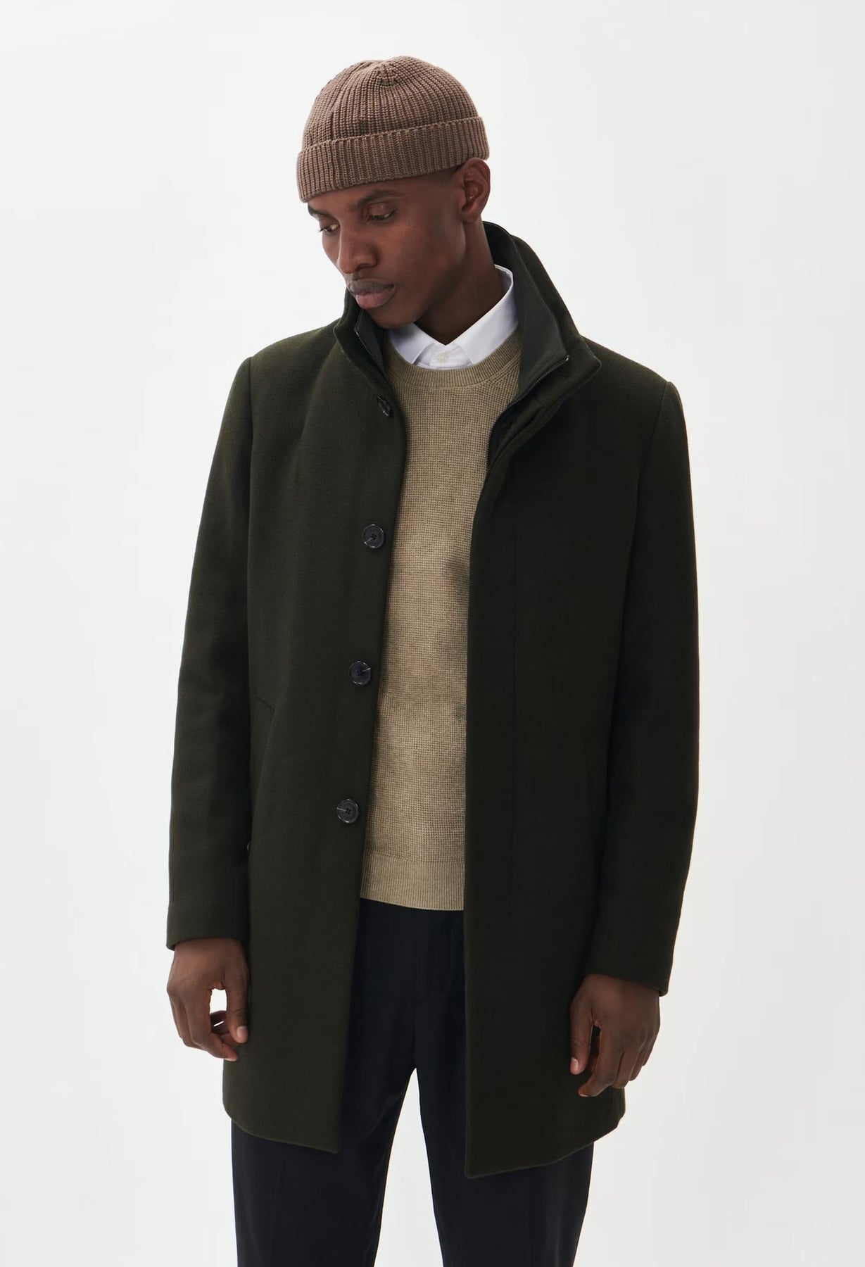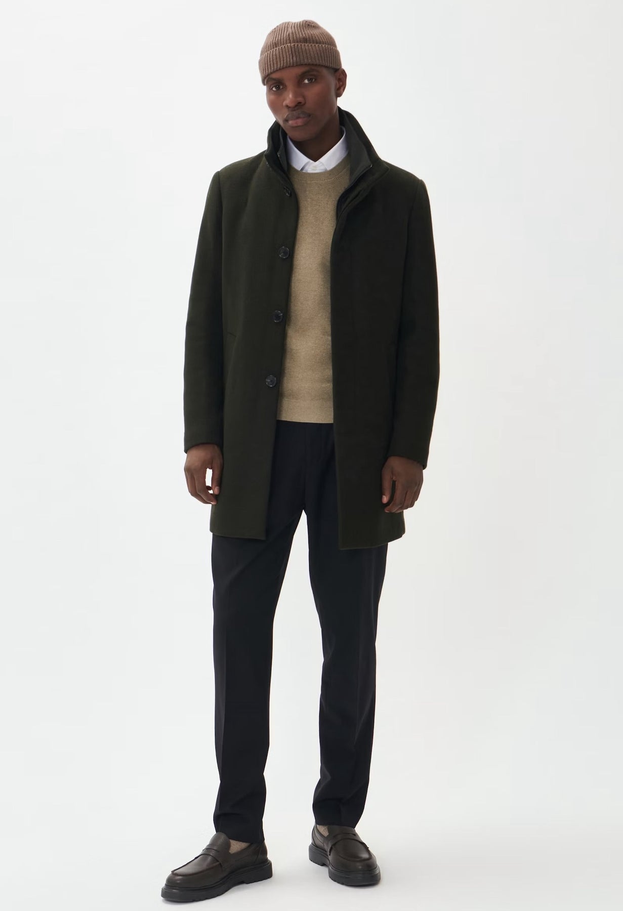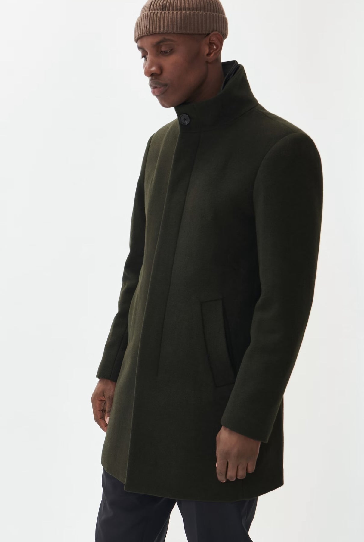 Denne elegante frakken er en perfekt kombinasjon av klassisk design og moderne funksjon – ideell for det norske klimaet. Med høy hals og stående krage beskytter den effektivt mot vind og kulde, samtidig som den gir et stilsikkert uttrykk. Frakken har et tidløst snitt som gjør at den passer like godt som ytterjakke til jobb og kontor, som over antrekket til fest og fritid.