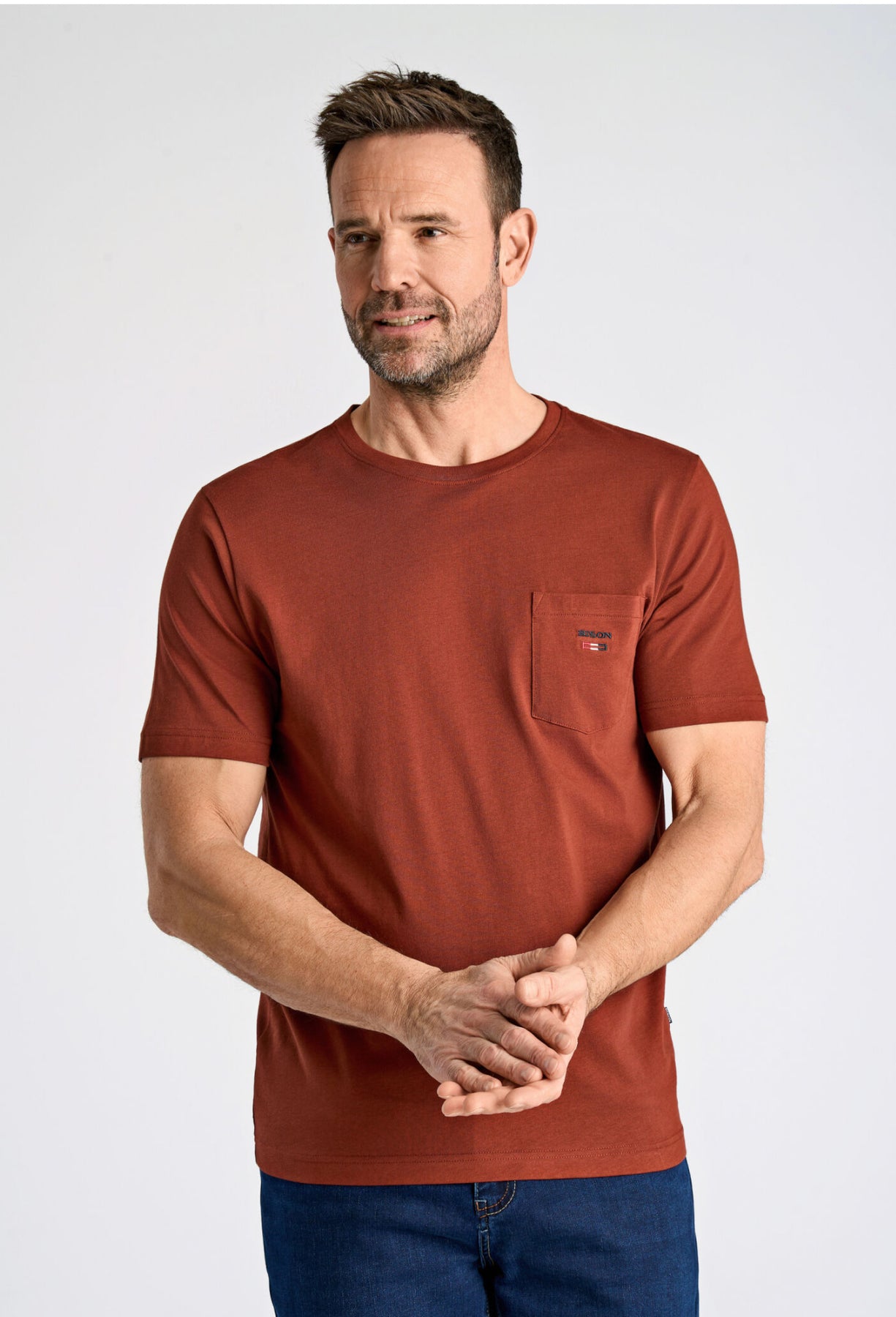 T-shirt fra Bison i god kvalitet. Den har en lomme på venstre bryst med Bison logo på.