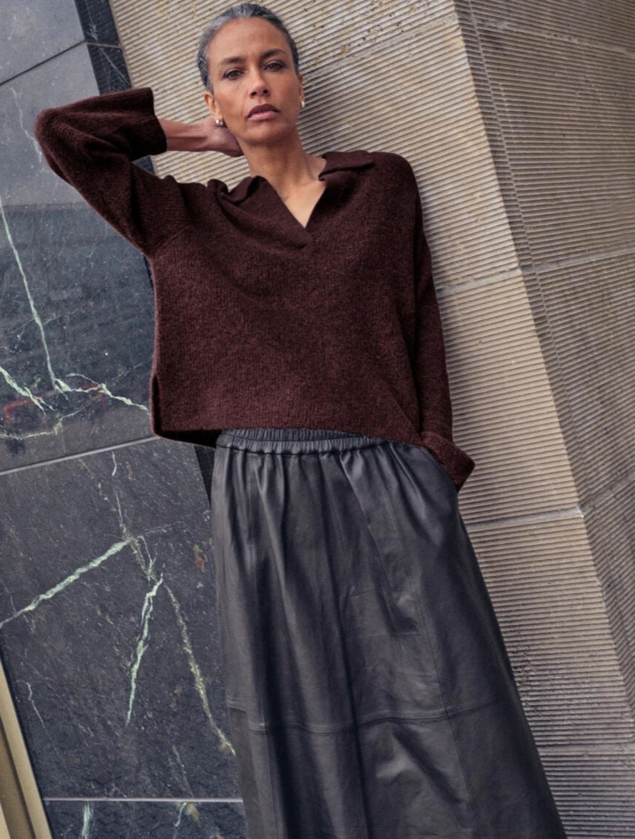 Strikket genser fra Mos Mosh med krage og V-hals. Den er deilig og mye som gir den en luksuriøs følelse. Den er i en løs passform.