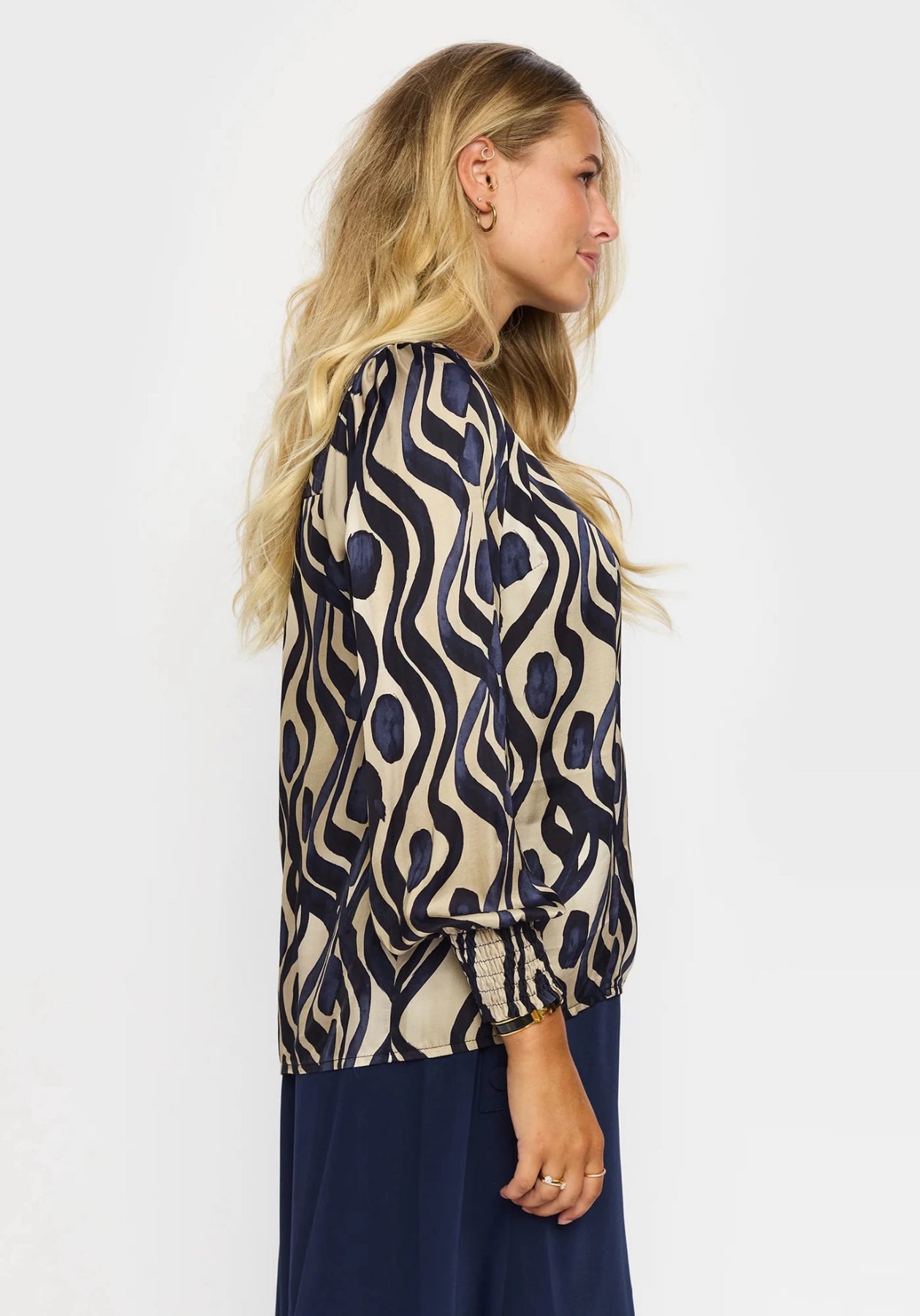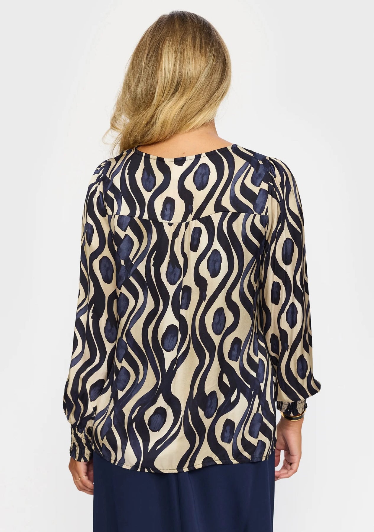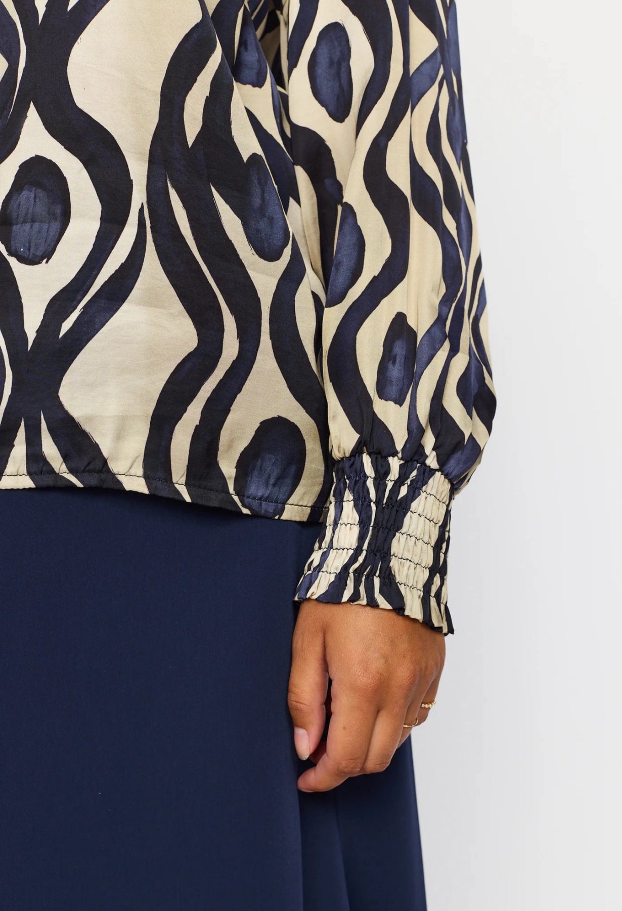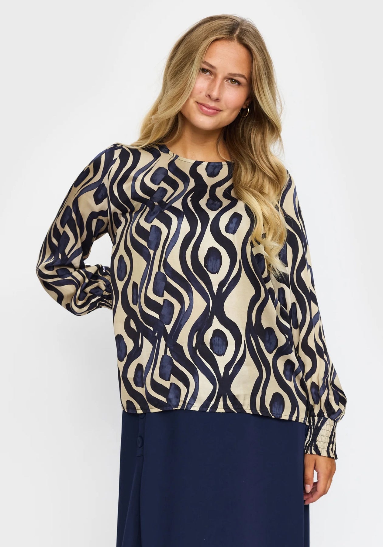 Bluse fra 2-Biz med lang arm. Den har strikk nederst på mansjettene.