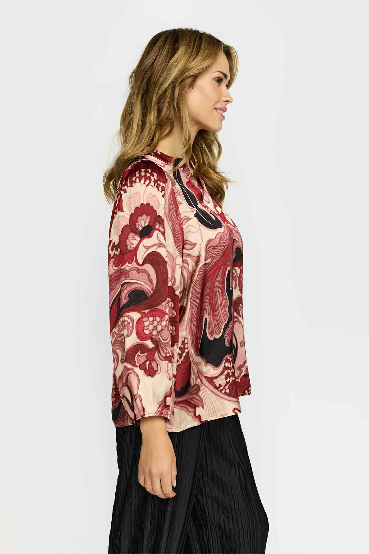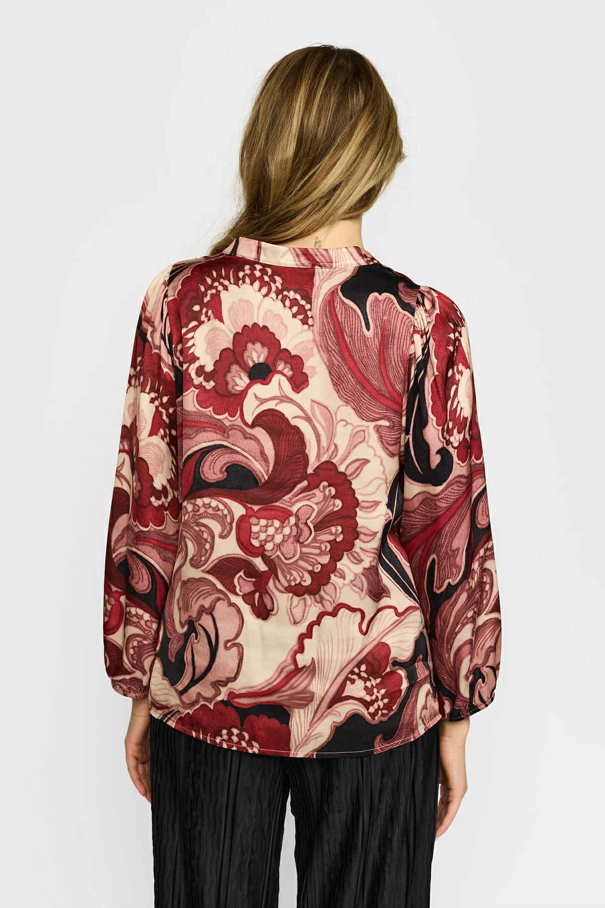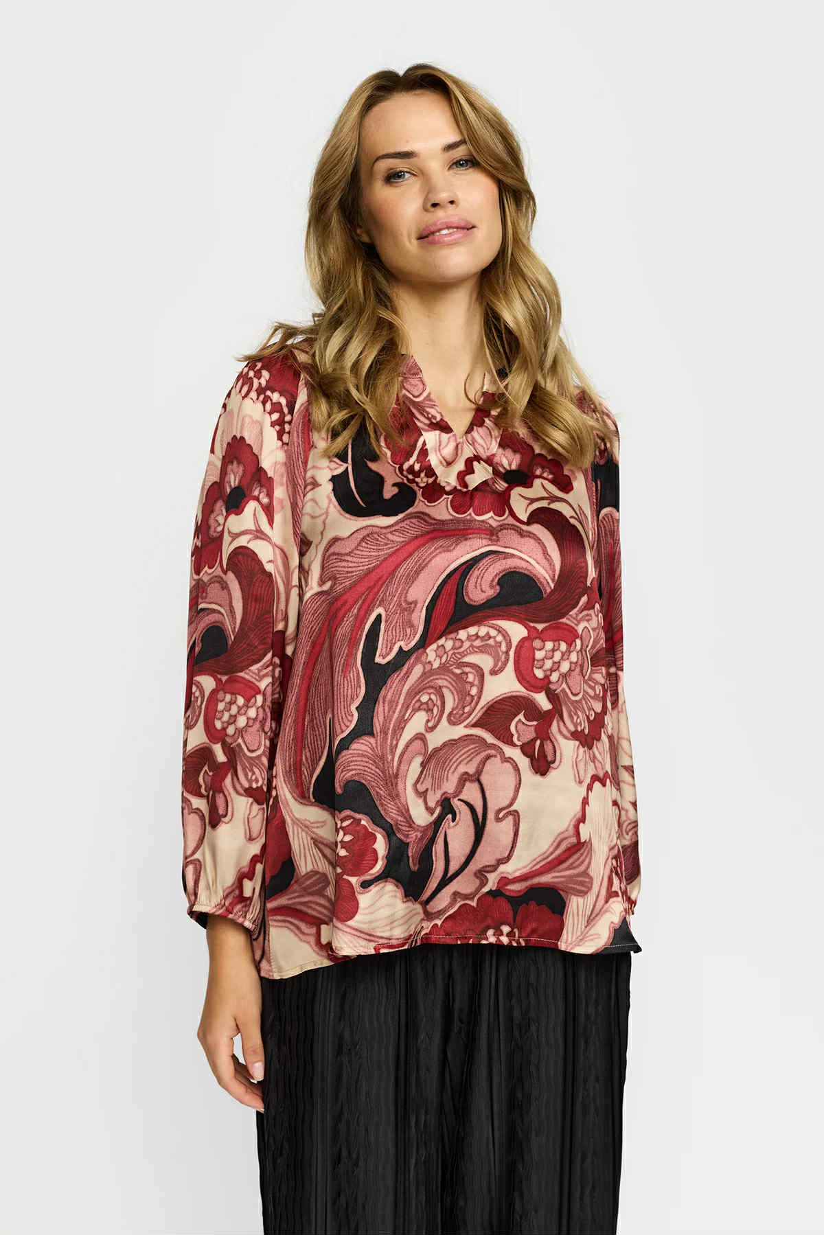 Bluse fra 2-Biz med et fint mønster i årets farge burgunder. Nydelig kvalitet i 70% Viscose og 30% silke.