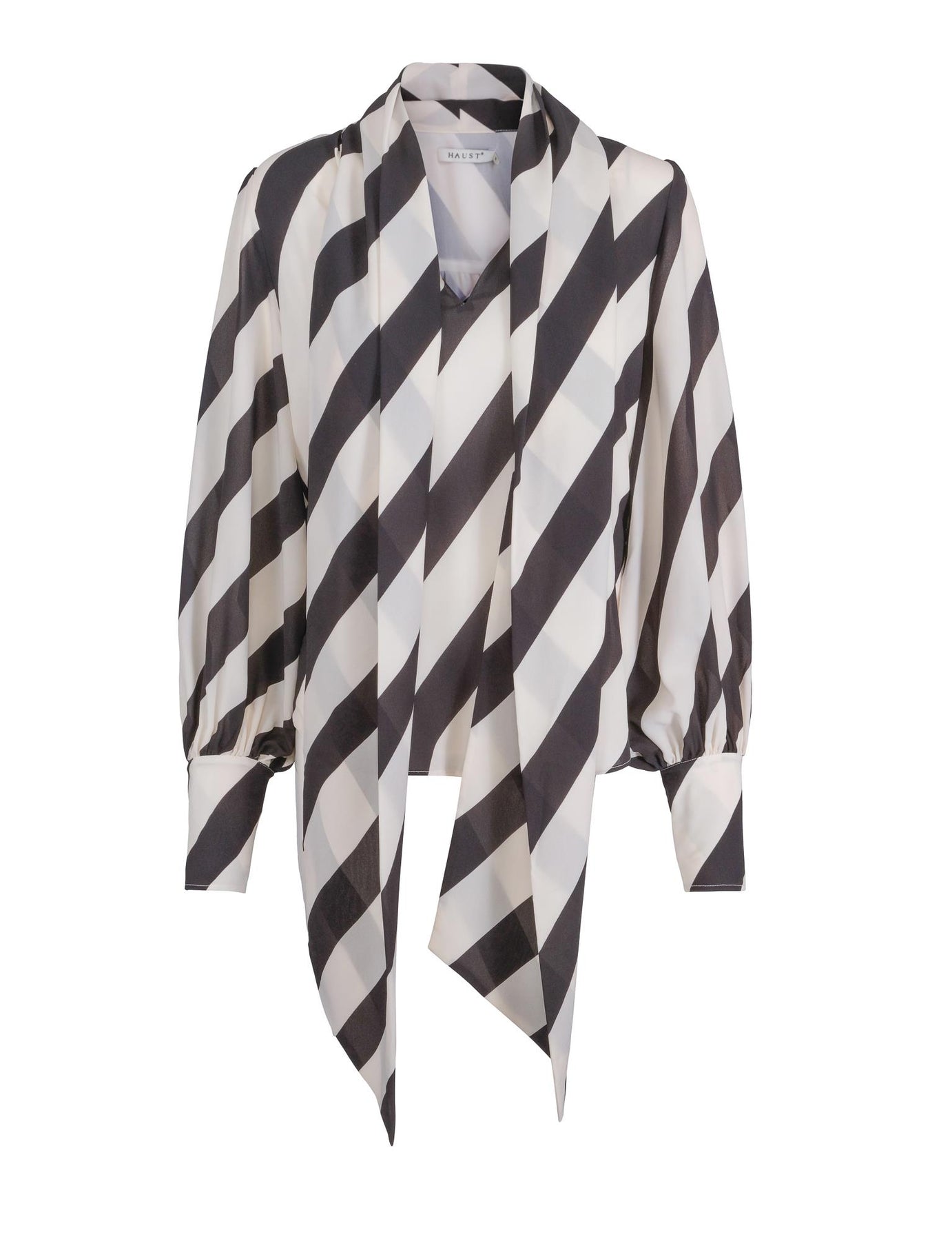 Denne blusen lar deg knyte en elegant fløyte i halsen for å tilføre et personlig og stilig preg.
